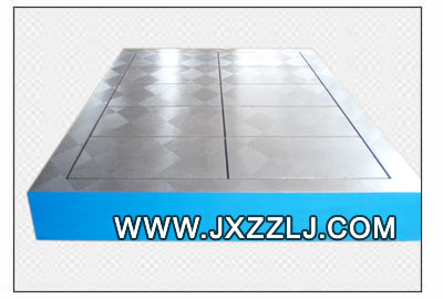 鑄鐵平板(鑄鐵平臺)的包裝:鐵板包裝和木制包裝兩種形式,平臺表表用塑料膜封裝,這種包裝適于平板內陸運輸,并有良好的防潮、防震、防銹和防野蠻裝卸等保護平板的措施,以確保安全運抵現場。 鑄鐵平板(鑄鐵平臺)鑄鐵的運輸:運輸是保證平板不變形的一個重要環節,所以運輸平板時要保證不超載,不超速,不疲勞駕駛, 不在天氣惡劣的情況下運輸。 鑄鐵平板(鑄鐵平臺)安裝: 鑄鐵平板(鑄鐵平臺)調試: 鑄鐵平板(鑄鐵平臺)工作環境: 鑄鐵平板(鑄鐵平臺)的使用注意事項:平板在使用時要先進行安裝調試。然后,把平板的工作面擦拭干凈,在確認沒有問題的情況下使用,使用過程中,要注意避免工件和平板的工作面有過激的碰撞,防止損壞平板的工作面;工件的重量更不可以超過平板的額定載荷,否則會造成工作質量降低,還有可能損壞平板的結構,甚至會造成平板變形,使之損壞,無法使用。 平板在使用時要先進行安裝調試。然后,把平板的工作面擦拭干凈,在確認沒有問題的情況下使用,使用過程中,要注意避免工件和平板的工作面有過激的碰撞,防止損壞平板的工作面;工件的重量更不可以超過平板的額定載荷,否則會造成工作質量降低,還有可能損壞平板的結構,甚至會造成平板變形,使之損壞,無法使用。 鑄鐵平板(鑄鐵平臺)的制造標準:按JB/T7974-1999制造)簡要描述 下載PDF文檔 鑄鐵平板(鑄鐵平臺)的質量檢測: 1、鑄鐵平板(鑄鐵平臺)工作表面不應有銹跡、劃痕、碰傷及其他影響使用的外觀缺陷。2、鑄鐵平板(鑄鐵平臺)工作表面不應有砂孔、氣孔、裂紋、夾渣及縮松等鑄造缺陷。各種鑄造表面應清除型砂、且表面平整,涂漆牢固。各棱邊應修鈍。在精度等級低于“00”級的平板工作面上,對于直徑小于15mm的砂孔允許用相同的材料堵塞,其硬度應低于周圍材料的硬度。在工作面上堵塞的部位應不多于四處,其相互之間的距離應不小于80mm。 3、在鑄鐵平板(鑄鐵平臺)的相對兩個側面上,應設置有安裝手柄、吊環等吊裝設施的螺紋孔或圓柱孔。設計吊裝位置時應考慮盡量減少因吊裝而引起的變動。 4、根據用戶要求,在板工作面上設置螺紋孔或溝槽后,這些部位不應出現高于工作面的凸起現象。 5、鑄鐵平板(鑄鐵平臺)應采用優質細顆料的灰口鑄鐵或合金鑄鐵制造。 6、鑄鐵平板(鑄鐵平臺)工作面的硬度應為HB 170-220。 7、鑄鐵平板(鑄鐵平臺)工作面應采用刮削工藝,對于“3”級平板工作面也可以采用刨削工藝,刨削工作表面的表面粗糙度按輪廓算術平均偏差Ra值應不大于5um 8、鑄鐵平板(鑄鐵平臺)應經過穩定性處理和去磁。 鑄鐵平板(鑄鐵平臺)平 面 度:可分實驗室級(Reference)、校驗級(Master)、工 具室級(Working) 三級 鑄鐵平板(鑄鐵平臺)平面研磨:平臺在很早的時候,人們利用三塊平臺相互匹配以產生真平平面。一個熟練而 又有耐心的 磨石師傅可以不藉助任何量測儀器,而僅利用三平臺相互匹配的 方式,做多次90度之旋轉, 即可產生令人難以相信的真平程度。 鑄鐵平板(鑄鐵平臺)平面度: 1.AA級:其平面度(μm)= 1+1.6D2 (D為平臺對角線長或直徑),用於高度精密 之測定之用, 常用於實驗室。 2. A級:其平面度為AA級之兩倍誤差,常用於工具檢驗室作精密量具之檢驗之用。 3. B級:其平面度為AA級之四倍誤差,常用於工具檢驗室或在現場檢驗量具或劃線之用。 鑄鐵平板(平臺)的分類: 按照用途分: 鑄鐵平板(平臺)可以分為:基礎平板、劃線平板、檢驗平板、鉚焊平板、焊接平板、火工平板、鉗工平板、研磨平板、刮痧平板、壓沙平板、試驗平板、機床工作臺(如:落地鏜床工作臺)、三座標平板、模具墊板、拼裝平板(也叫裝配平板)。 或:基礎平臺、劃線平臺、檢驗平臺、鉚焊平臺、焊接平臺、火工平臺、鉗工平臺、研磨平臺、刮痧平臺、壓沙平臺、試驗工作臺(如:振動試驗工作臺簡稱振動試驗臺)、機床工作臺(如:落地鏜床工作臺)、三座標平臺、模具工作臺、拼裝平臺(也叫裝配平臺)。 按照形狀分類:普通平板(普通平臺)、圓形平板(也叫圓平板/圓平臺/圓形平臺)、方平板(方平臺) 按照表面工藝可以分為:平面平板和T型槽平板(T型槽平臺)