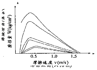 曲線所表示的在初期磨損量大,這是由于磨損面不平滑,實際接觸面積小,比壓大所造成的。對于平板來說,使用中平板刮研接觸斑點始終處于初期磨損階段,這是造成刮研接觸斑點磨損主要原因之一。根據磨擦速度、接觸壓力磨損曲線(下圖)可以看出,磨損速度v=0.3~0.5m/s的狀態下,磨損量最大,這一段稱為粘著磨損。平板的使用狀態下,工件在平板上移動速度也正是在這一階段上進行工作的,這是造成刮研接觸斑點磨損的原因之二。
